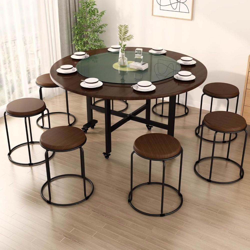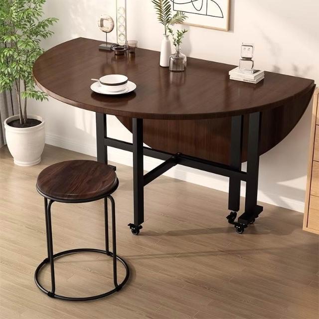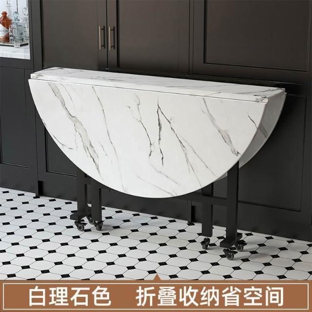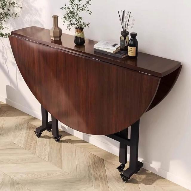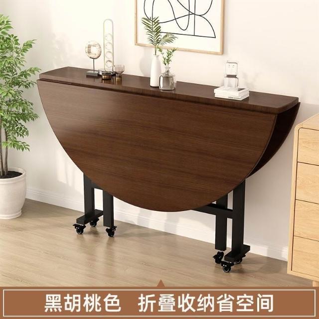 靈感家居 家用折疊餐桌客廳圓桌多功能可移動折疊餐桌小戶型帶輪吃飯折疊桌