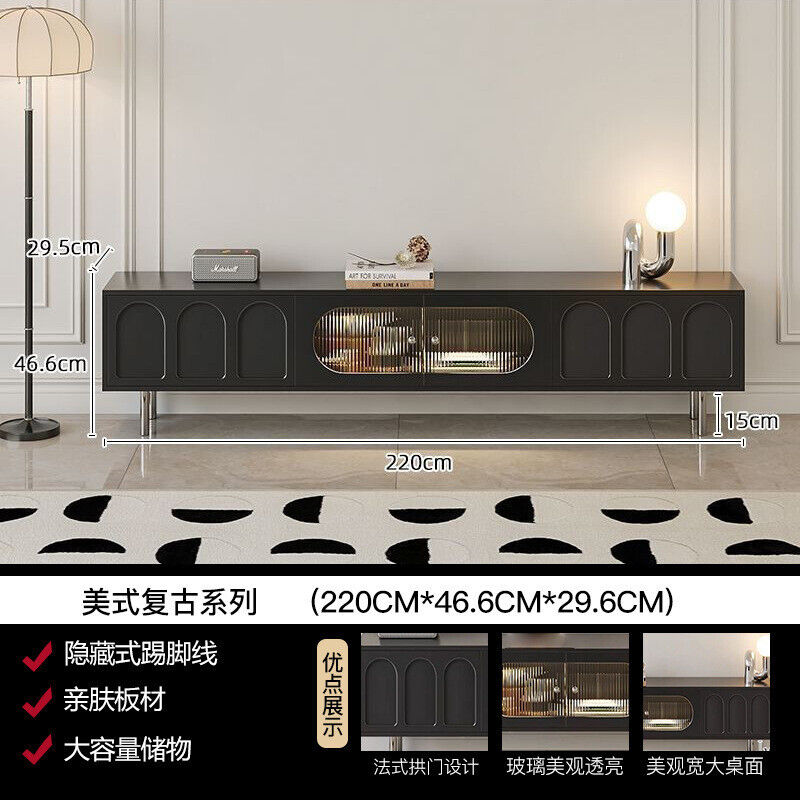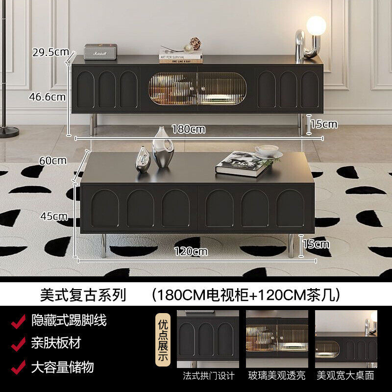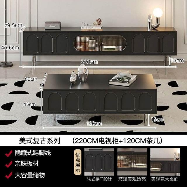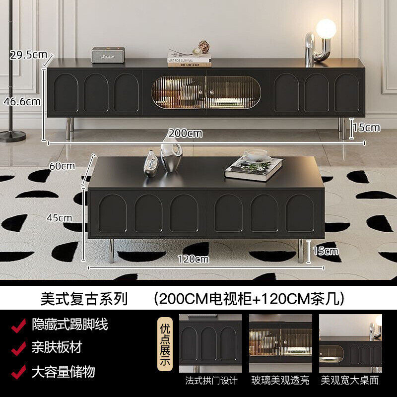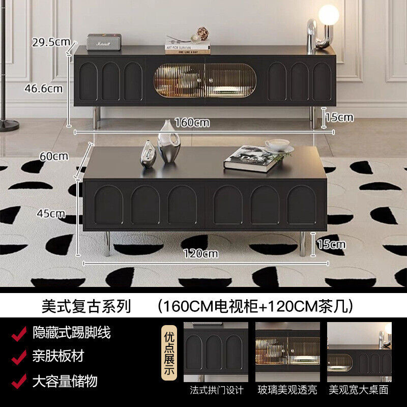 工廠直銷美式複古電視櫃茶幾組閤客廳家用簡約現代新款黑色中古風電視機櫃