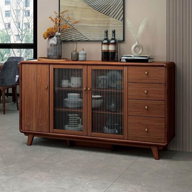 免運 破損補寄新中式餐邊櫃實木框簡約現代客廳多功能茶水櫃家用廚房收納儲物櫃