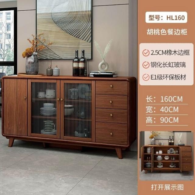 免運 破損補寄新中式餐邊櫃實木框簡約現代客廳多功能茶水櫃家用廚房收納儲物櫃