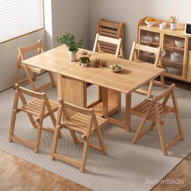 廠家直發實木折疊餐桌家用小戶型飯桌長方形簡約伸縮餐桌椅現代折疊桌桌子