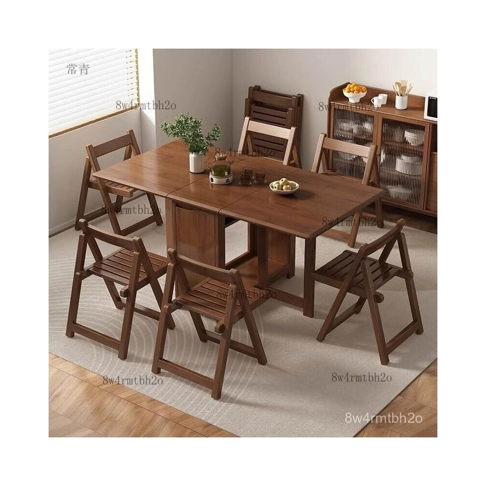廠家直發實木折疊餐桌家用小戶型飯桌長方形簡約伸縮餐桌椅現代折疊桌桌子