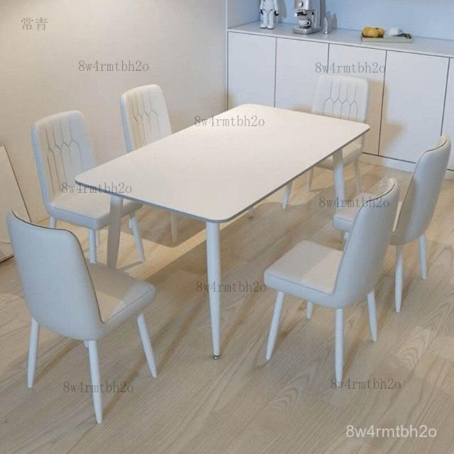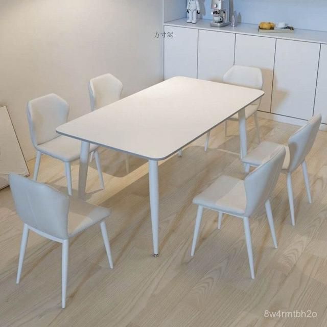 廠家直供極簡純白巖闆餐桌北歐現代長方形奶油風小戶型家用簡約餐桌椅組閤