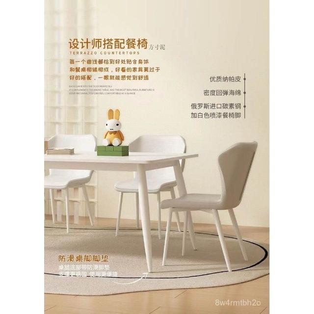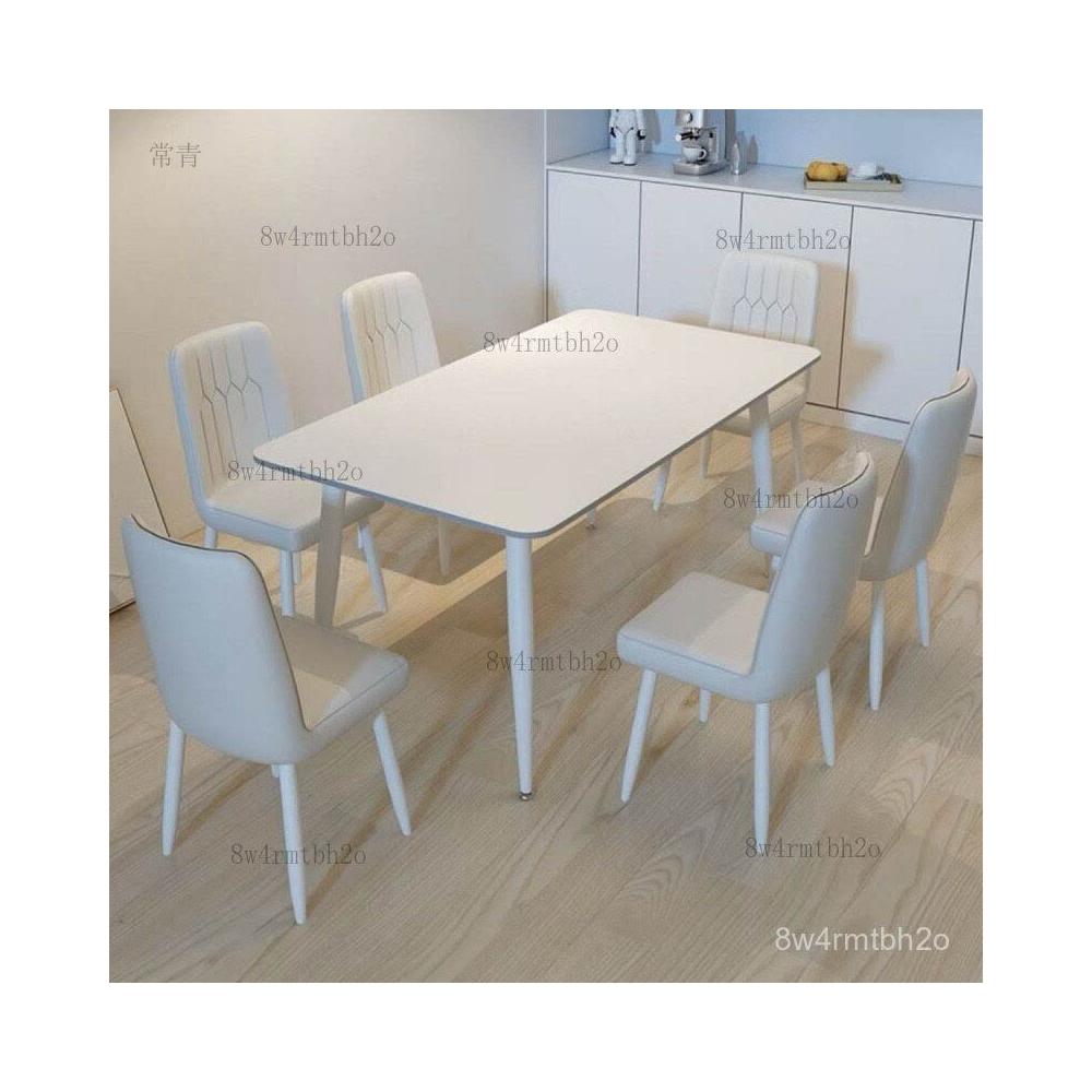 廠家直供極簡純白巖闆餐桌北歐現代長方形奶油風小戶型家用簡約餐桌椅組閤