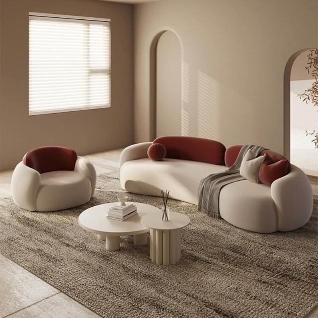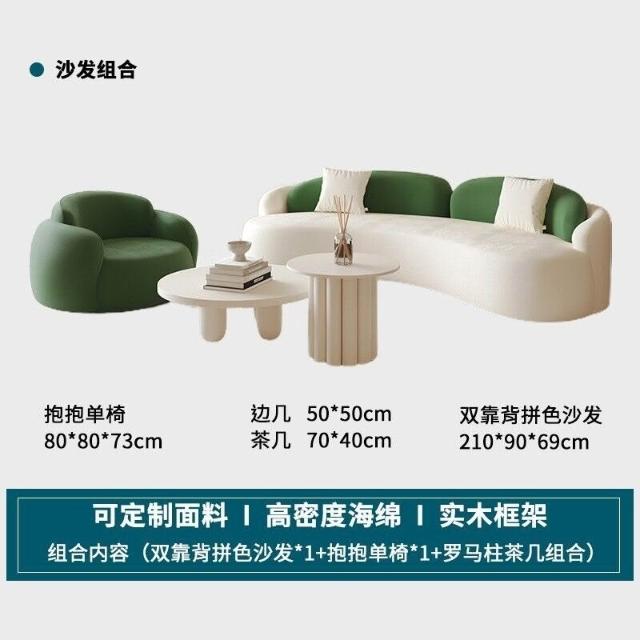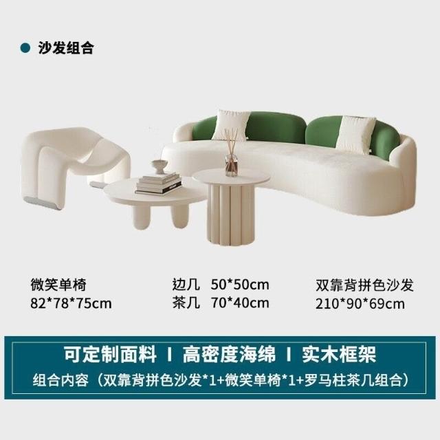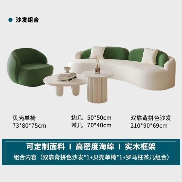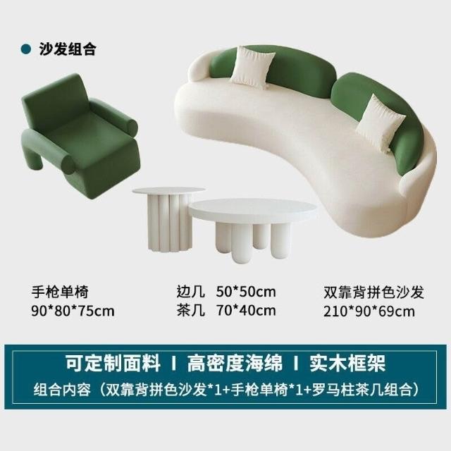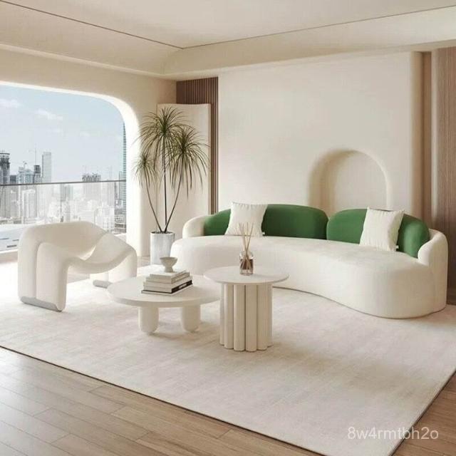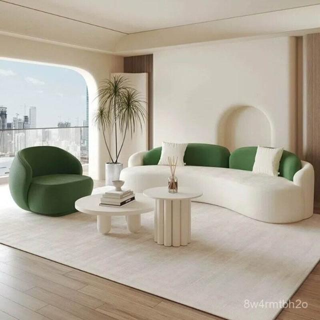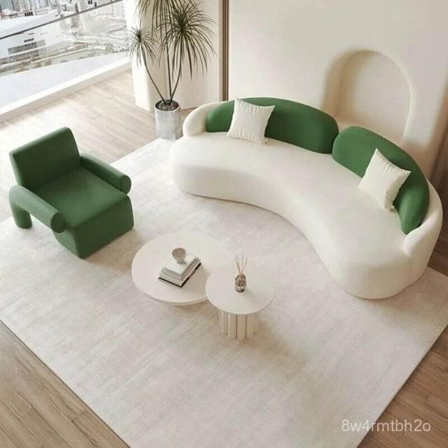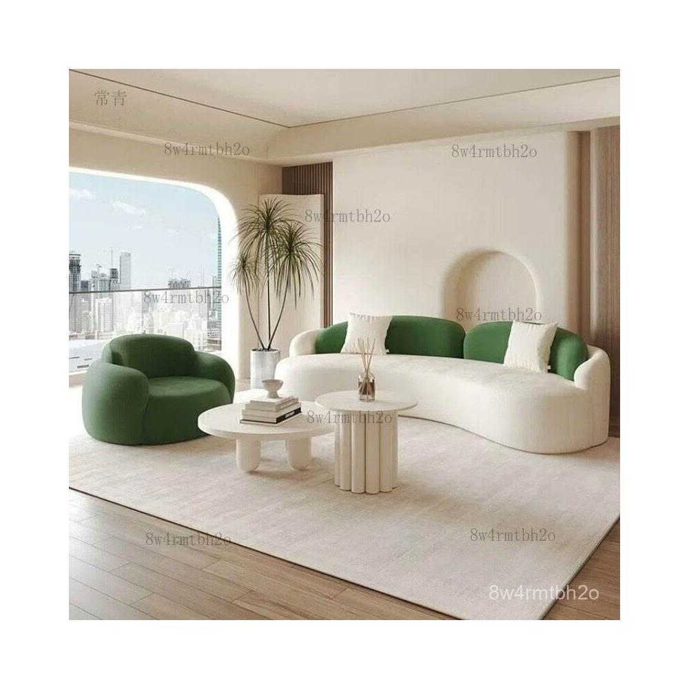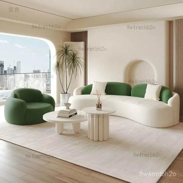工廠直髮中古奶油風弧形沙髮網紅客廳設計師單椅美容院休息區沙髮茶幾組閤