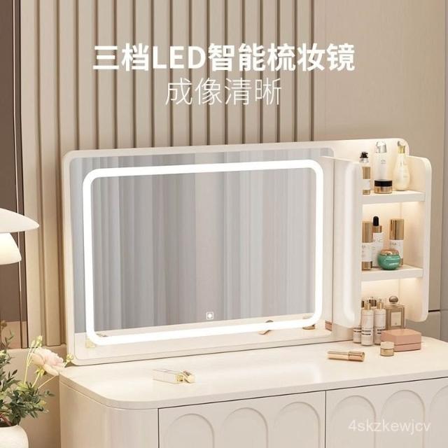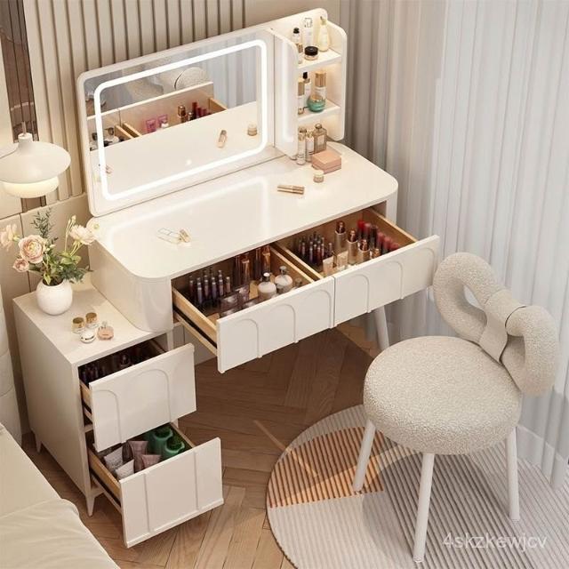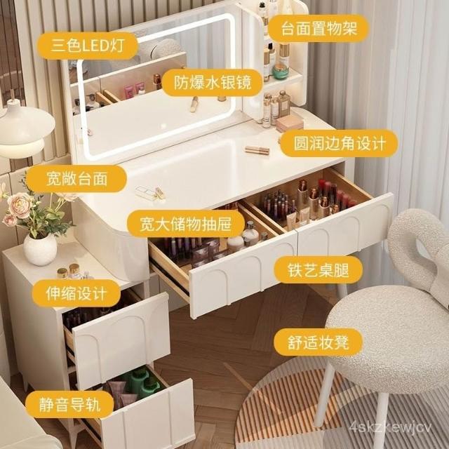 新品熱賣奶油風梳妝臺臥室現代簡約小戶型化妝桌床頭收納鬥櫃書桌鏡子一體 BPLQ