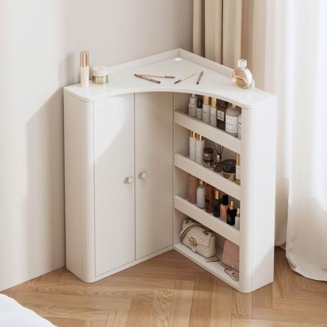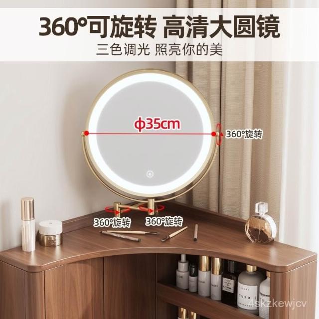 免運可開發票360旋實木圓弧墻角梳妝臺小型轉角化妝桌臥室拐角小戶型角落三角化妝臺 QM1X