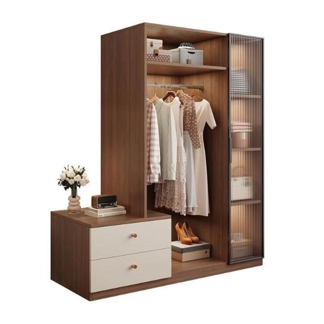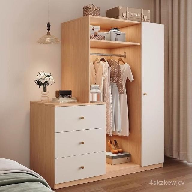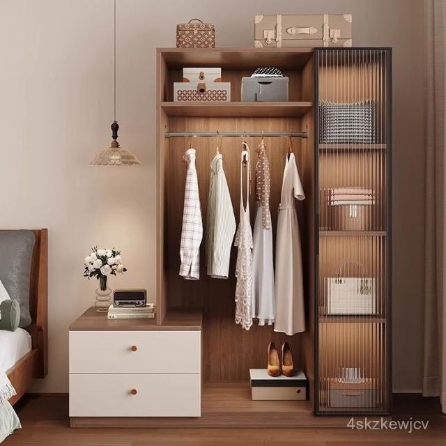 ‍免運‍可開發票衣櫃奶油風落地掛衣架臥室衣櫃鬥櫃一體靠墻衣帽架床邊置物架 OCUW