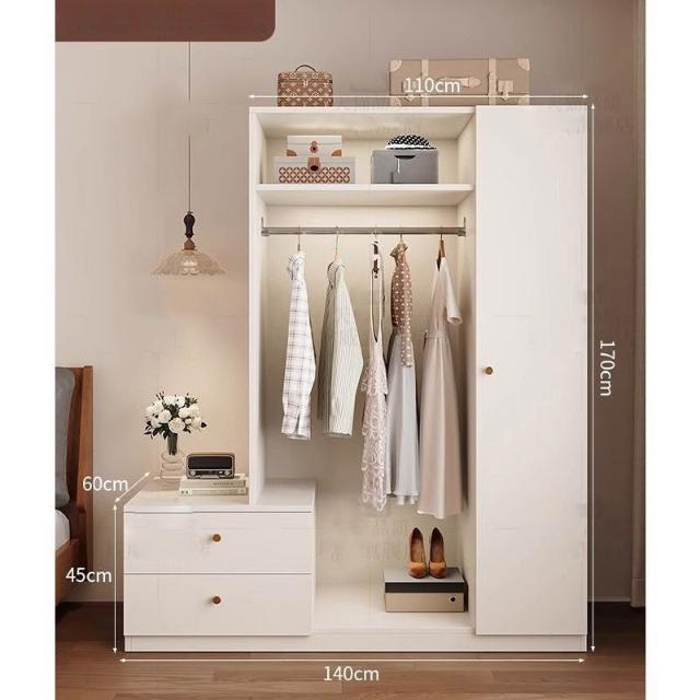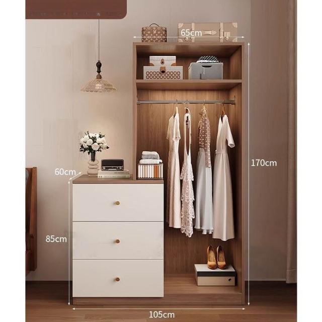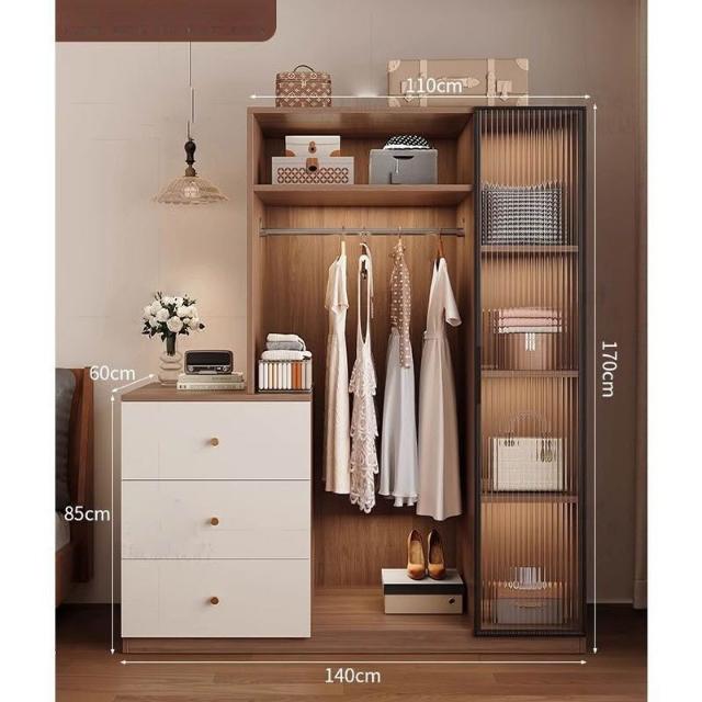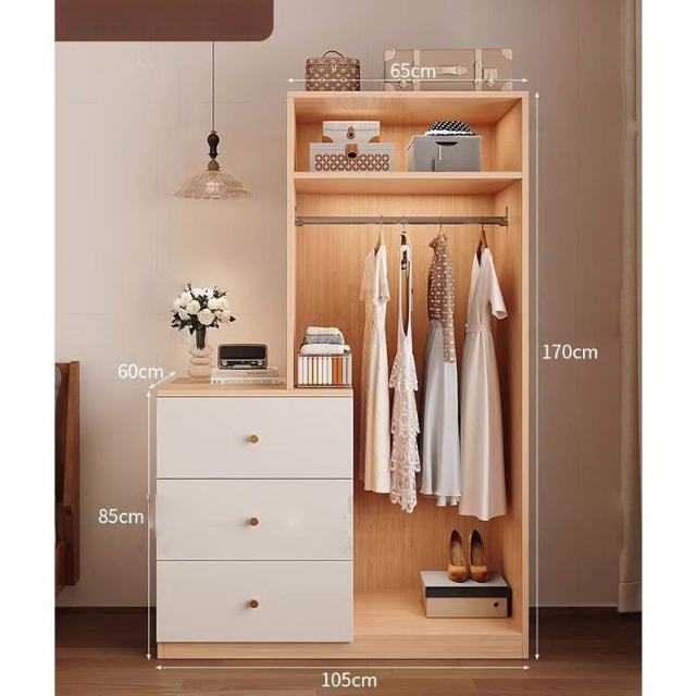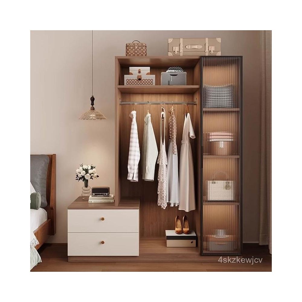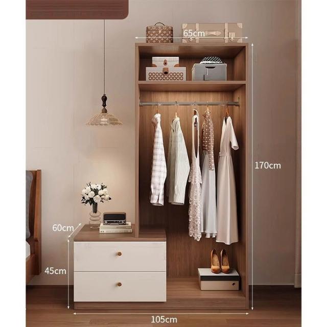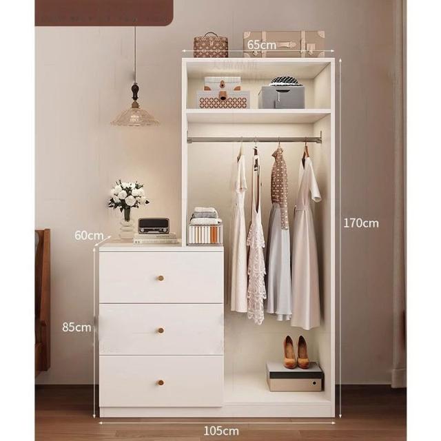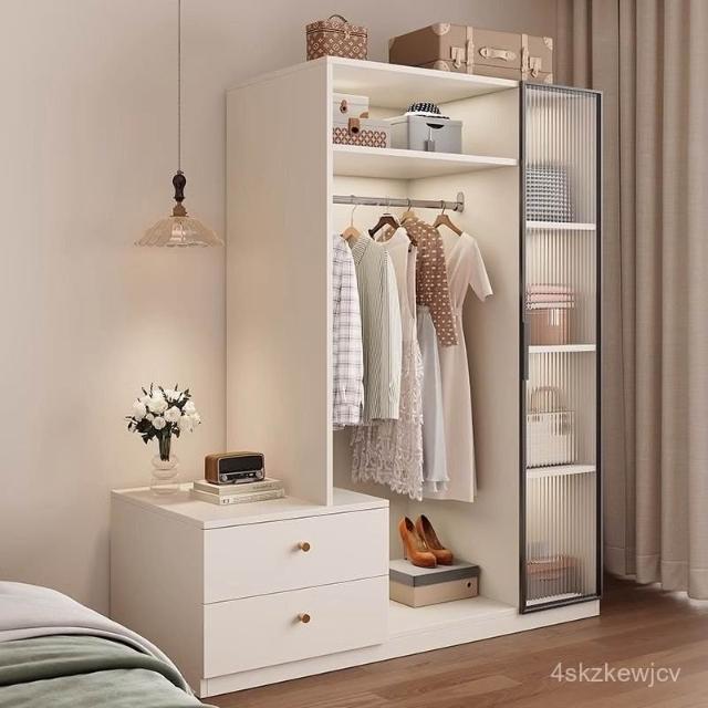 免運可開發票衣櫃奶油風落地掛衣架臥室衣櫃鬥櫃一體靠墻衣帽架床邊置物架 OCUW