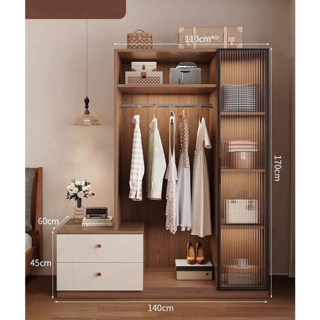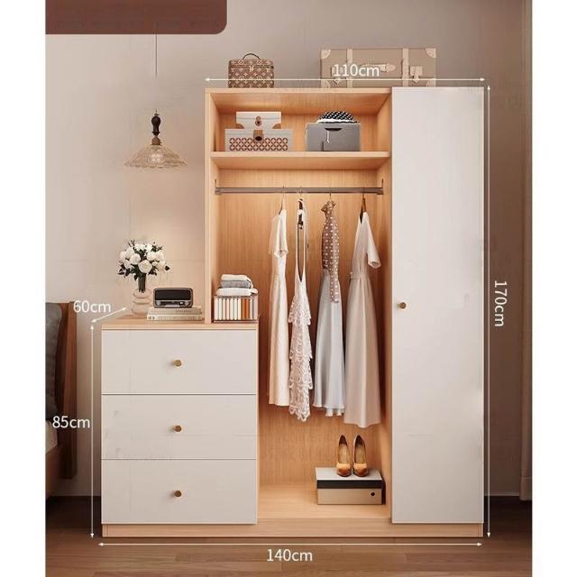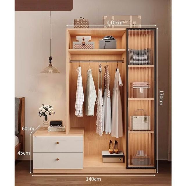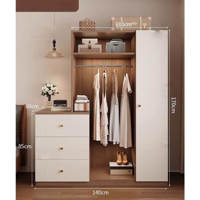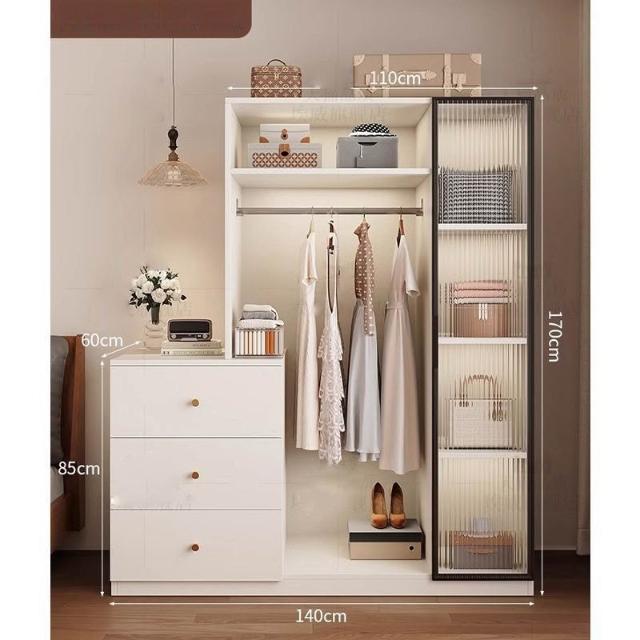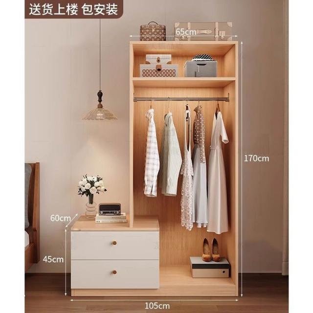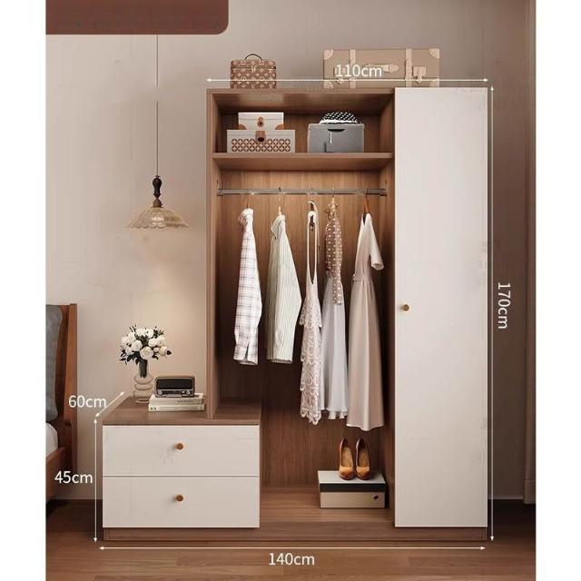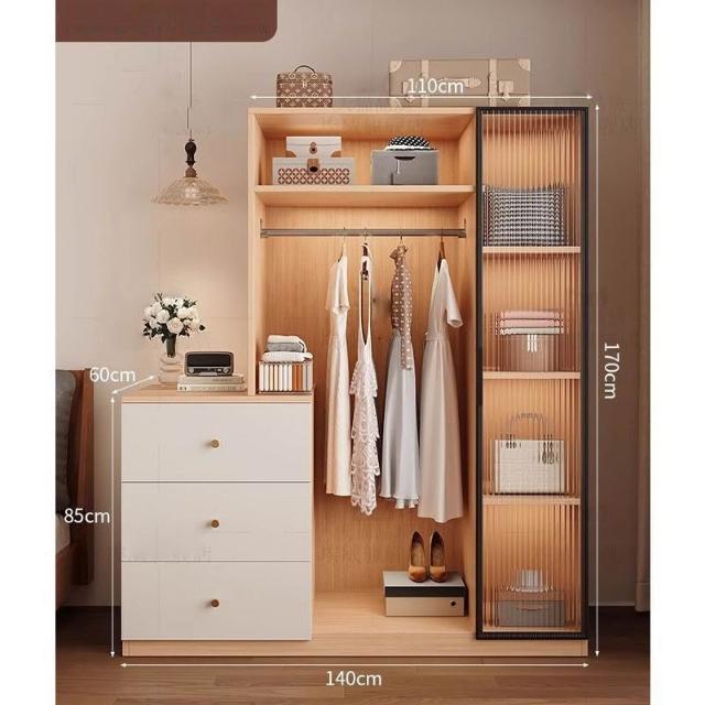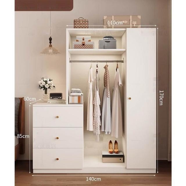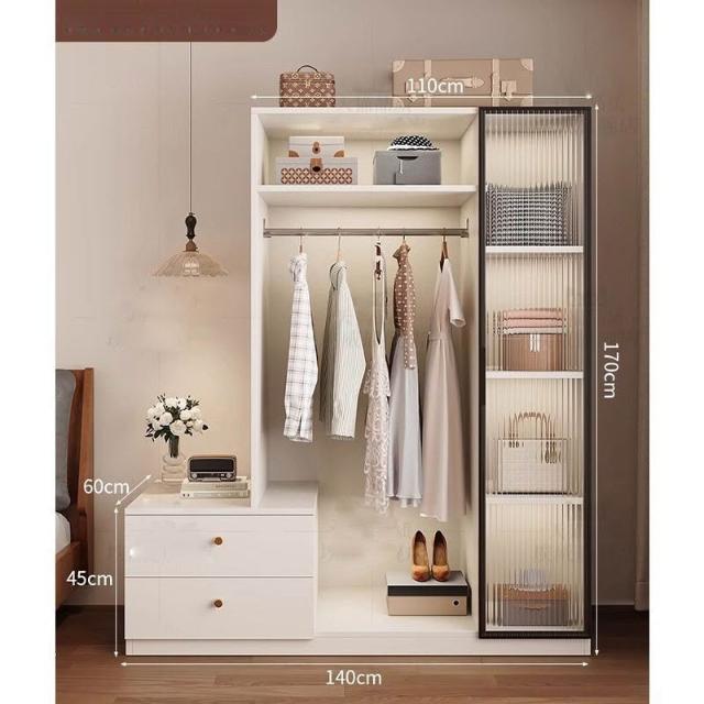 免運可開發票衣櫃奶油風落地掛衣架臥室衣櫃鬥櫃一體靠墻衣帽架床邊置物架 OCUW