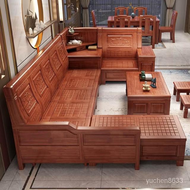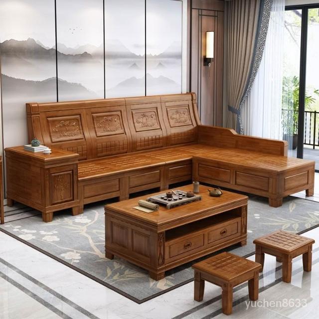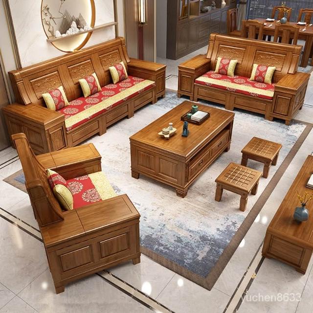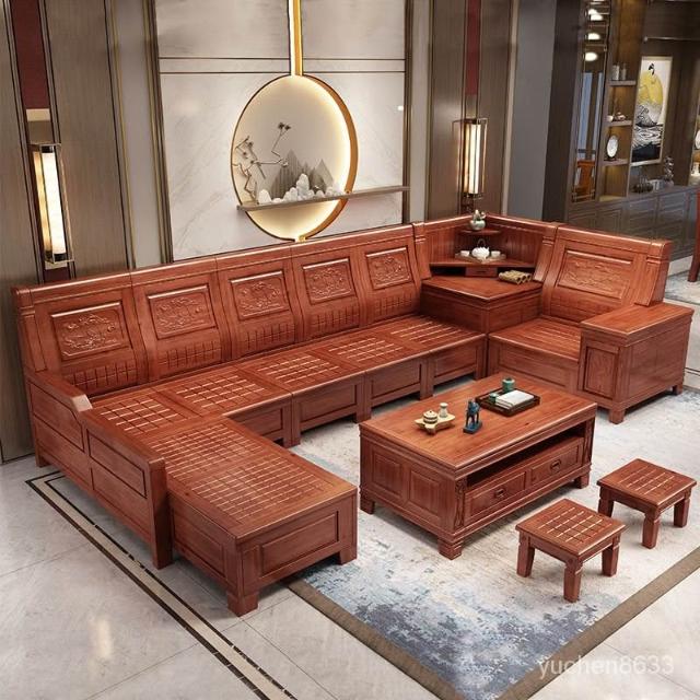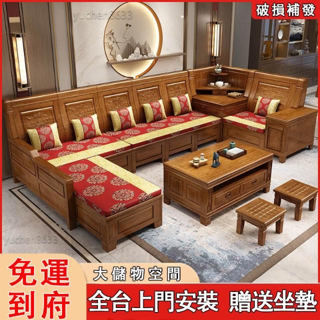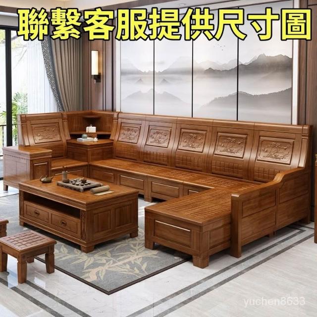 [全臺可上門安裝 免運]實木沙髮組閤 香樟木沙髮 茶幾組閤 儲物沙發 新中式仿古客廳傢具 實木沙發 L型沙髮 客廳沙發