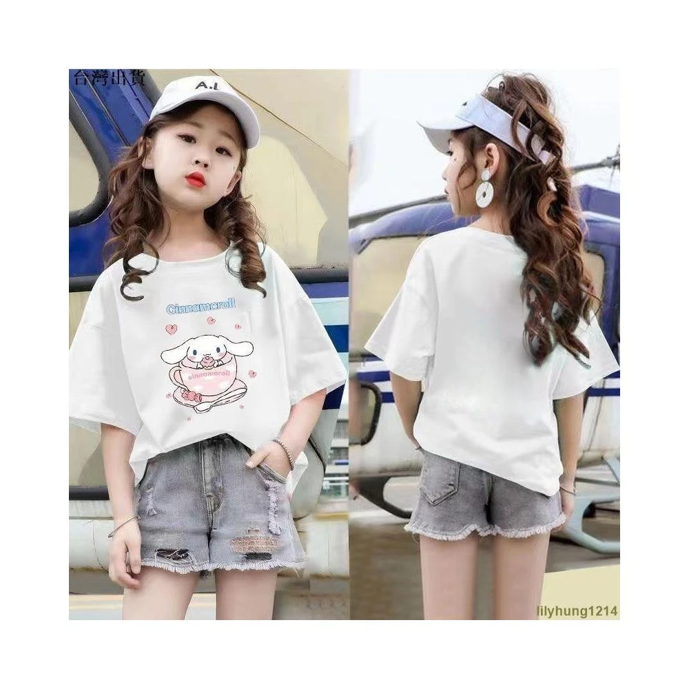 潮流服飾 女童短袖上衣女大童T恤女童素色短袖T恤夏季童裝中大童卡通印花短袖上衣服女孩甜美夏裝小女孩衣服✦