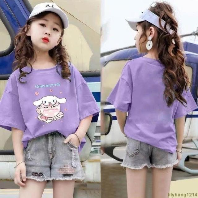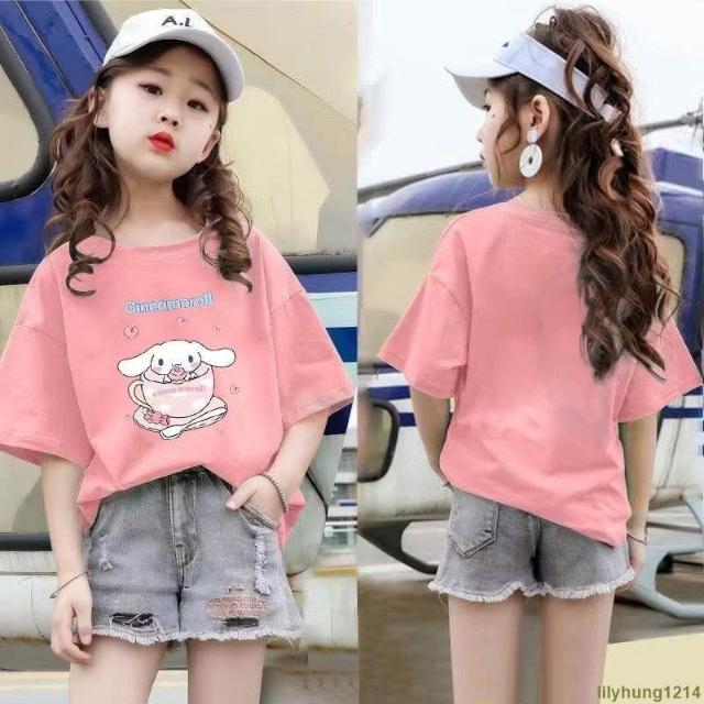 潮流服飾 女童短袖上衣女大童T恤女童素色短袖T恤夏季童裝中大童卡通印花短袖上衣服女孩甜美夏裝小女孩衣服✦