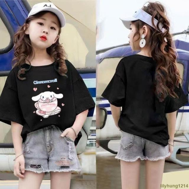 潮流服飾 女童短袖上衣女大童T恤女童素色短袖T恤夏季童裝中大童卡通印花短袖上衣服女孩甜美夏裝小女孩衣服✦