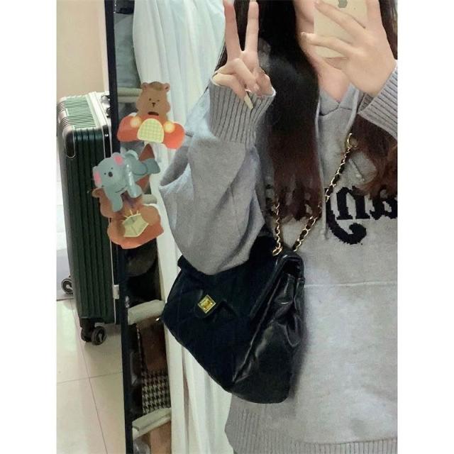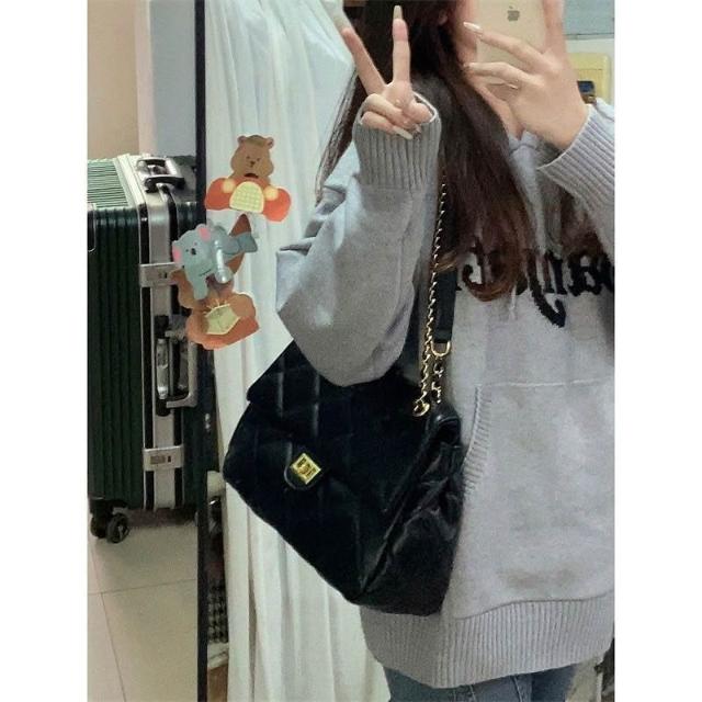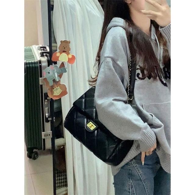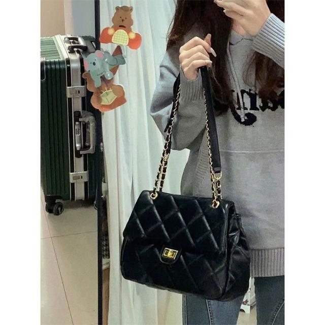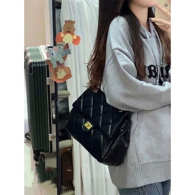 ins 高級感菱格鏈條腋下包女 2026新款大容量一包三用 慵懶風單肩斜挎包