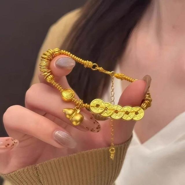 五帝錢手鍊葫蘆掛飾手串盤纏手鍊福祿復古百搭手飾新年禮物