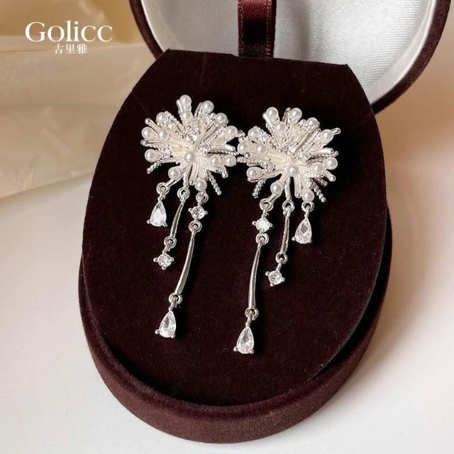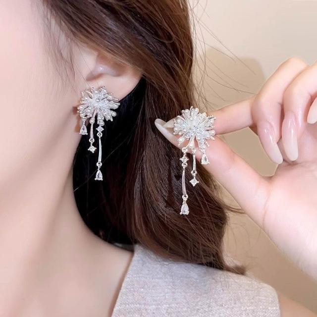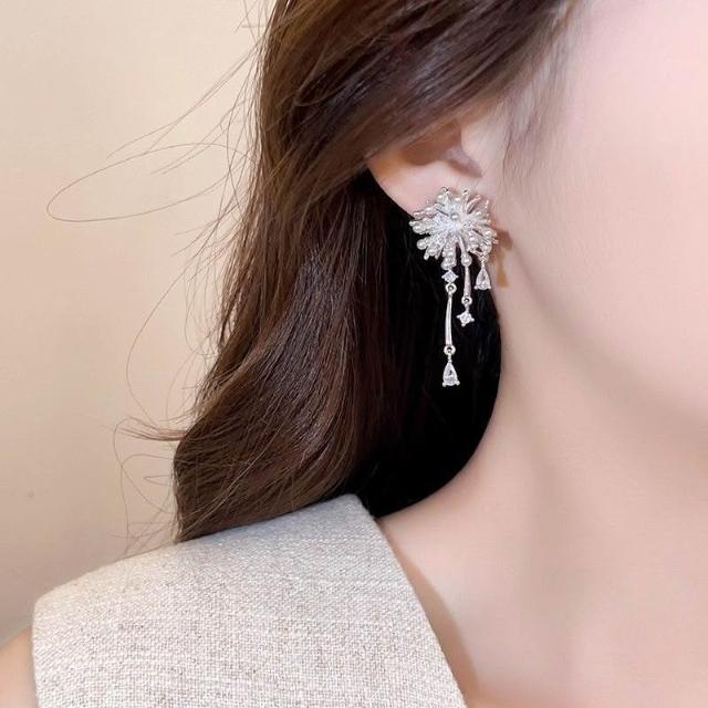 煙花耳釘/鋯石/流蘇/女款2026新款/爆款/高級感/新年耳飾/氣質大氣耳環
