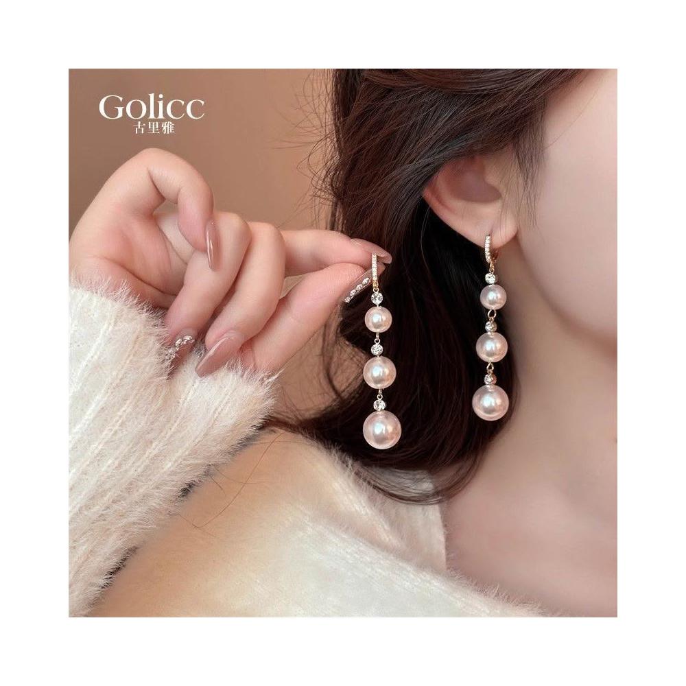 古裏雅鑲鑽長款珍珠流蘇耳環女 2026新款爆款高級感耳飾 新年巨好看耳釘