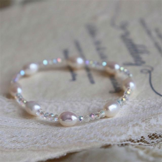 巴洛克手串女 簡約爆款天然淡水珍珠手鍊 米形可調節百搭小米珠手飾