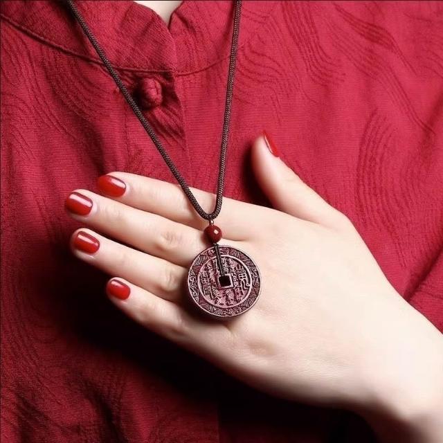 轉運高純度硃砂墜飾 山鬼花錢吊墜 山鬼花錢吊墜純硃砂壓制