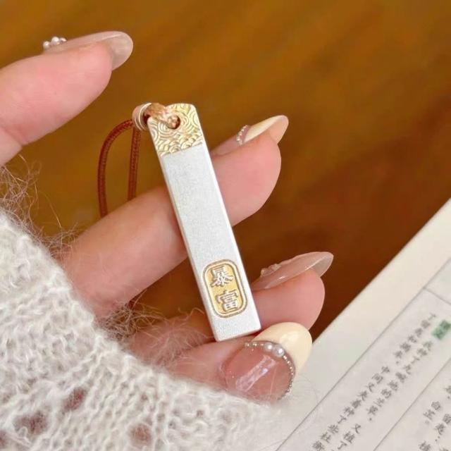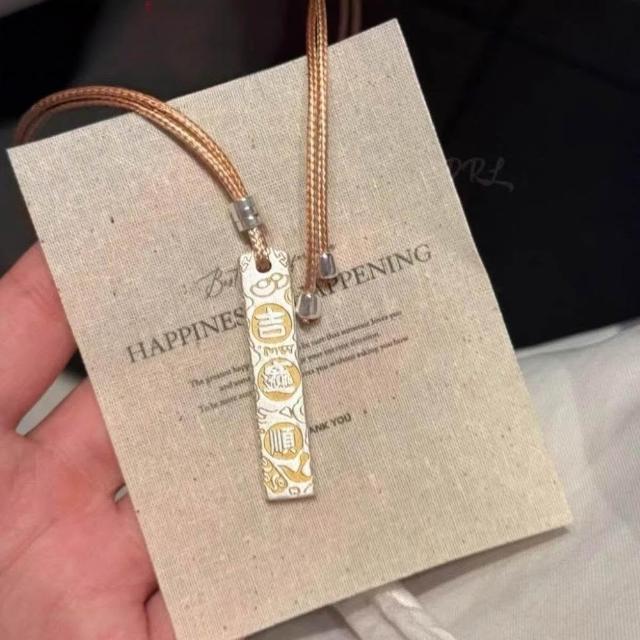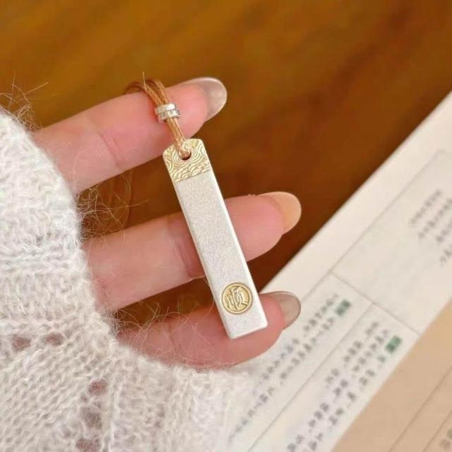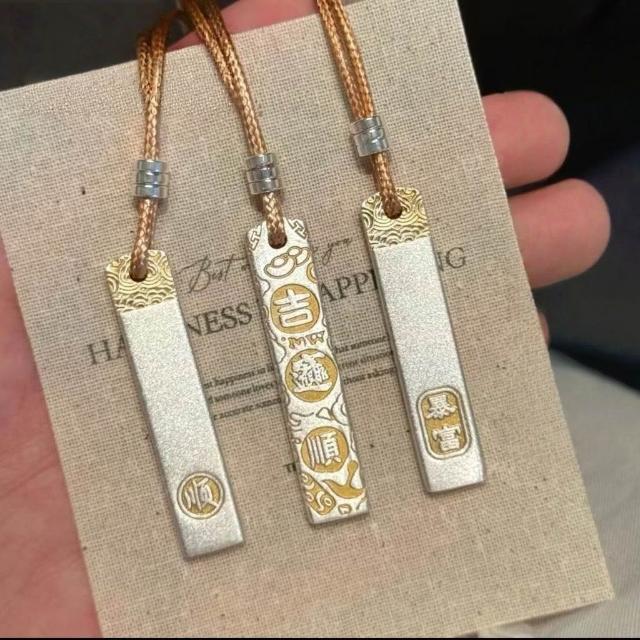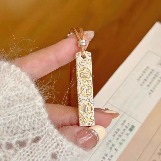 民族風個性祥雲長條吉言墜飾 暴富描金無事牌鎖骨鏈 掛脖項鍊小衆項鍊