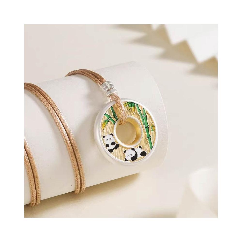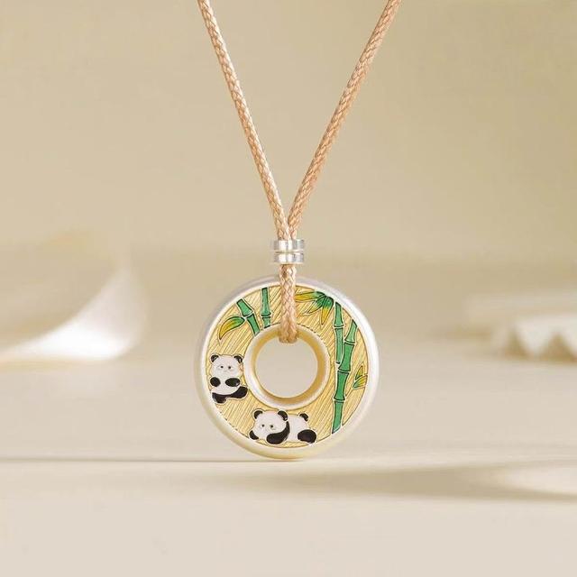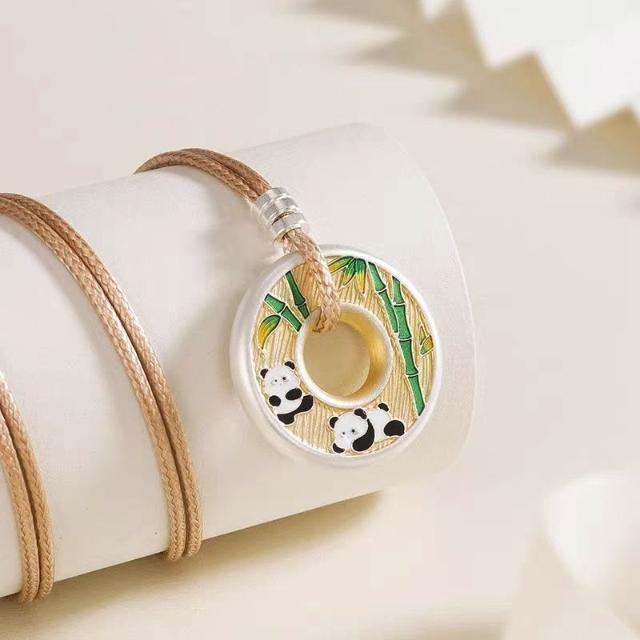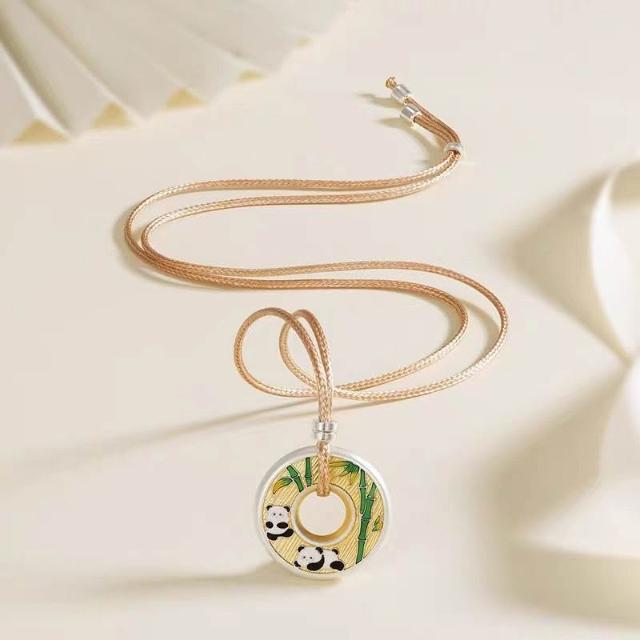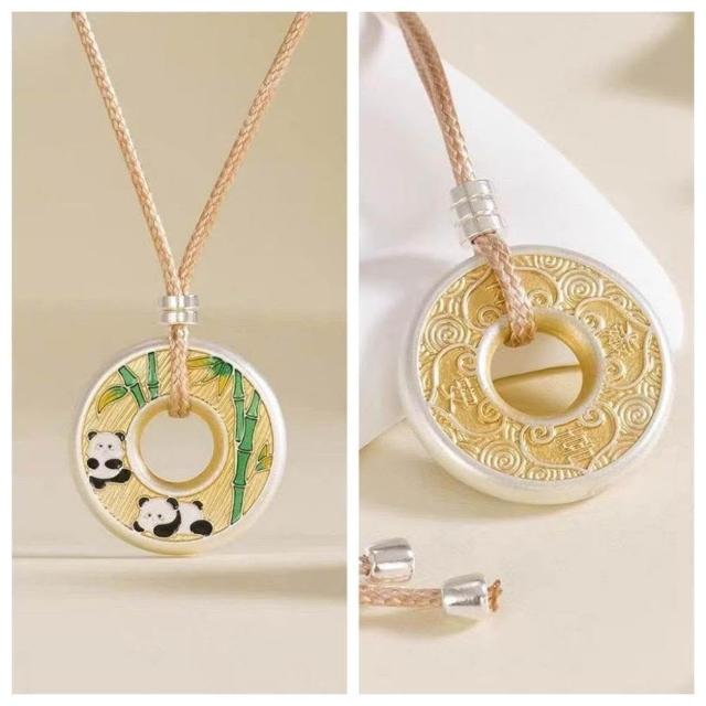 民族風情侶款平安熊貓平安扣吊墜 實心描金國風鍍銀項鍊送女友禮物