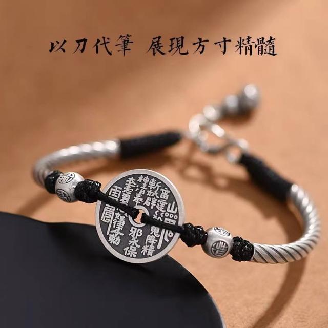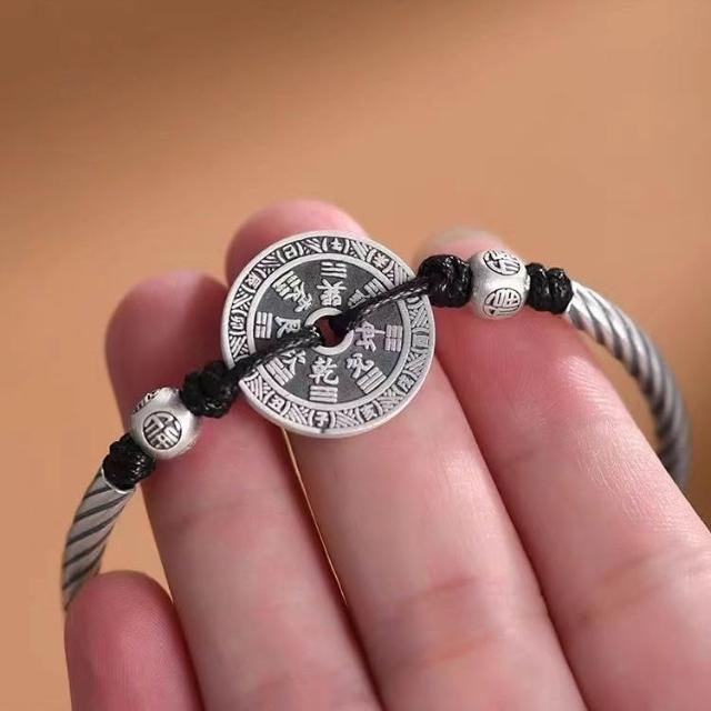 轉運紅繩手串 山鬼花錢幣手鍊男女款 護身符八卦牌銅錢編織手繩