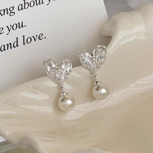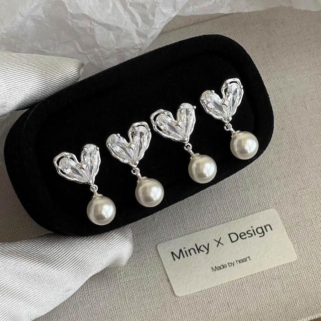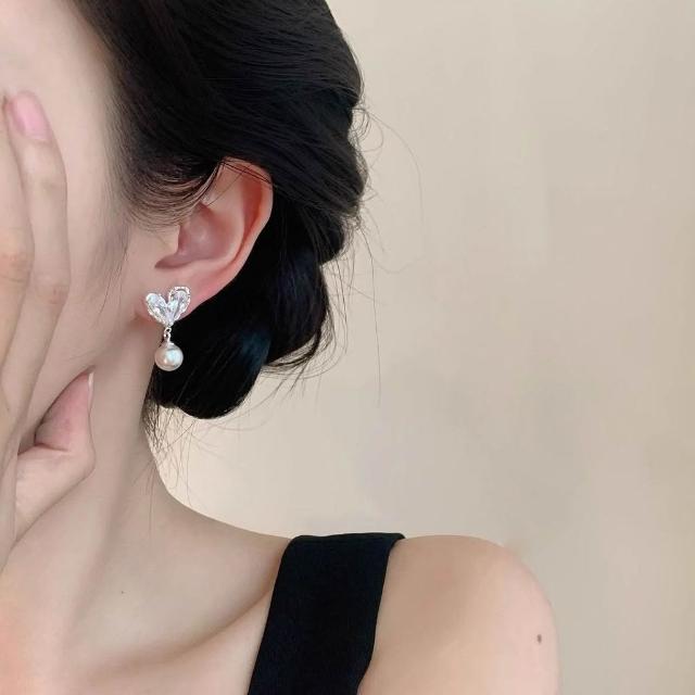「心心相印」心形鋯石耳釘女耳環 方圓臉耳飾絕美耳釘愛心耳環心形