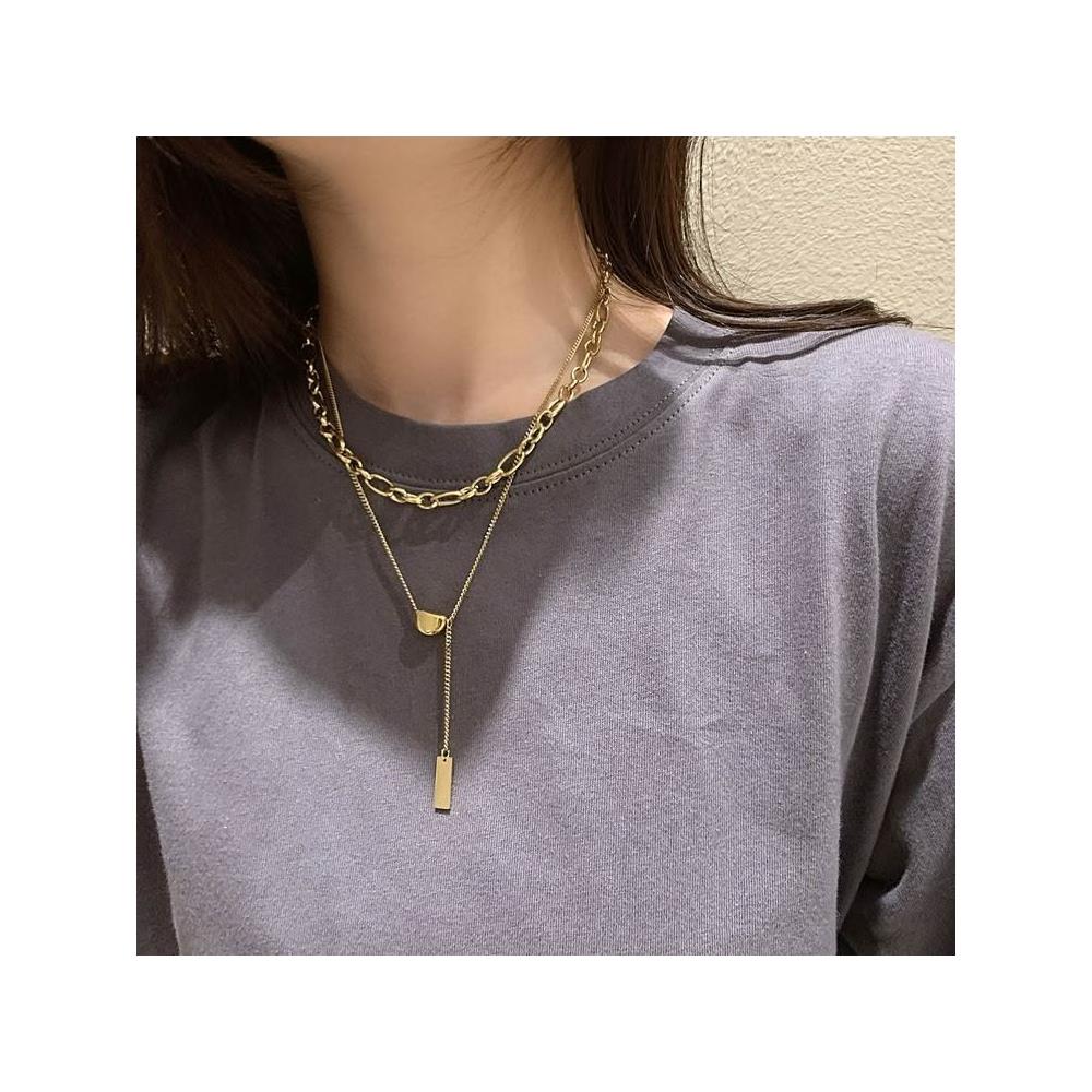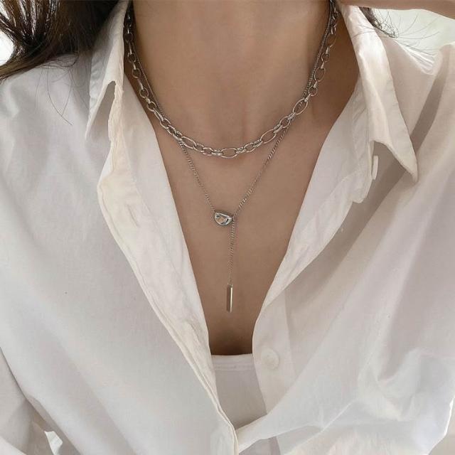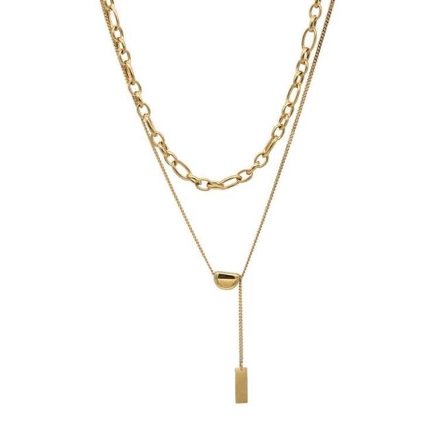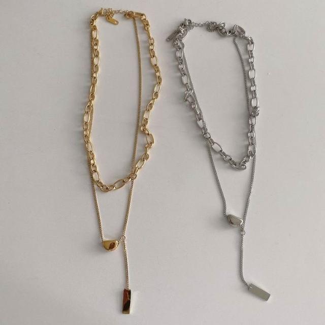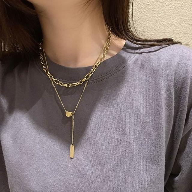 法式復古雙層疊戴頸鏈 金屬鏈條項鍊女 韓國簡約百搭氣質項鍊ins冷淡風