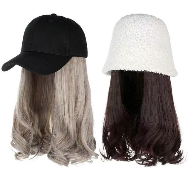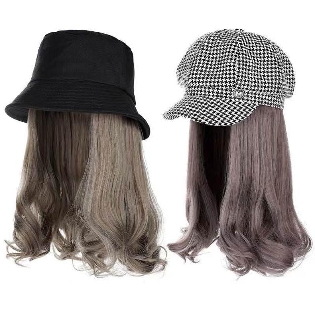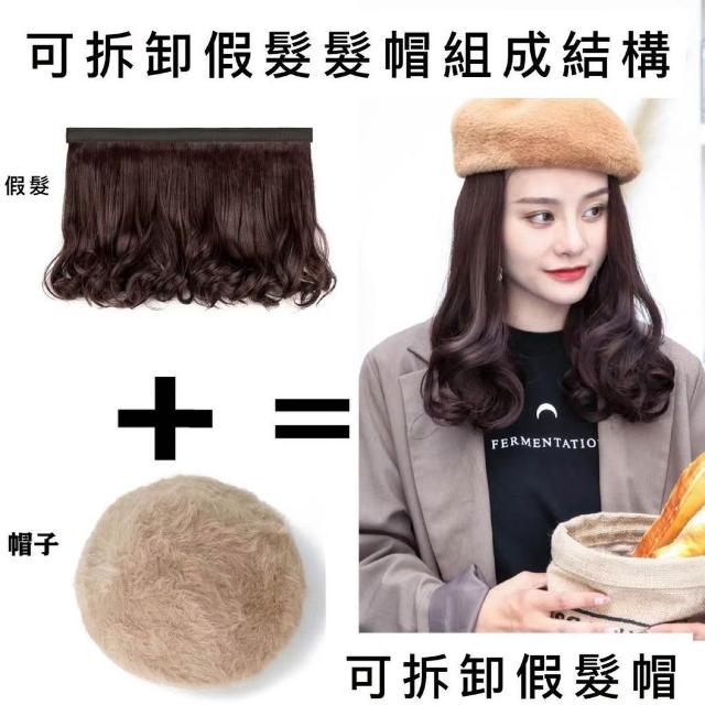 可拆卸魔術貼帽子假髮片 女生假髮日常帽子 假髮必備 甜美梨花捲俏麗短髮帽子髮片可搭配漁夫帽棒球帽魔術貼假髮