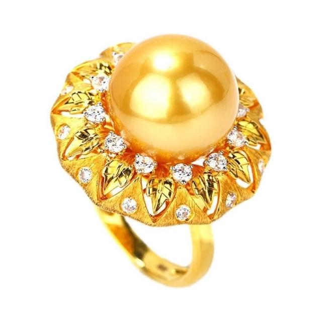 vintage墜飾意大利復古 宮廷布契拉提風格仿南洋珍珠手工拉絲開口戒指金珠