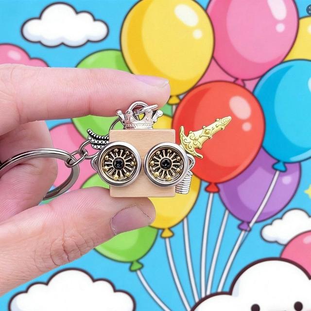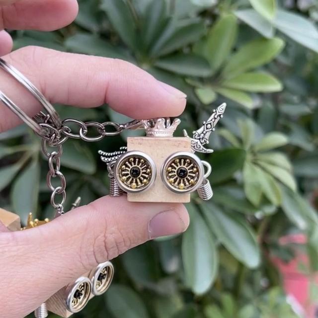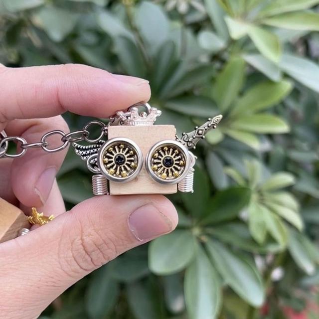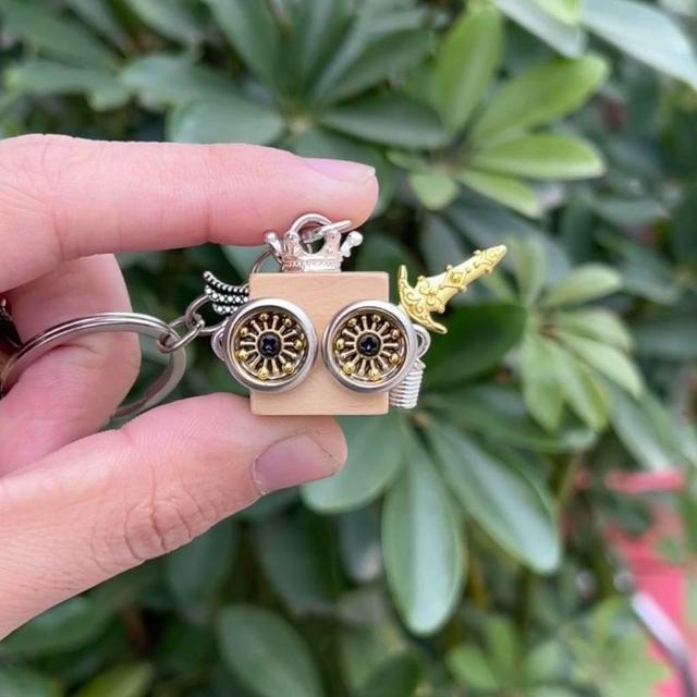 朋克小衆精緻卡通擺件鑰匙扣包飾 禮物機器人精緻項鍊 車載木質手工