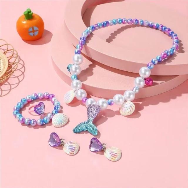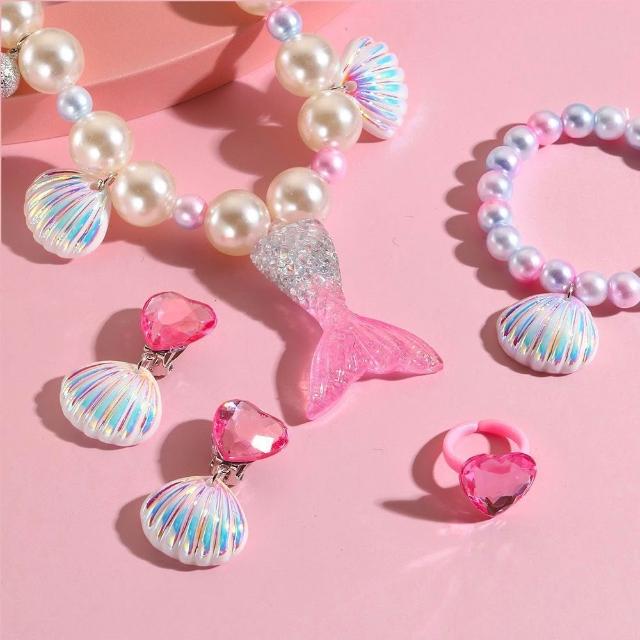 兒童項鍊套盒兒童首飾多巴胺項鍊兒童美人魚尾巴貝殼開學項鍊手鍊