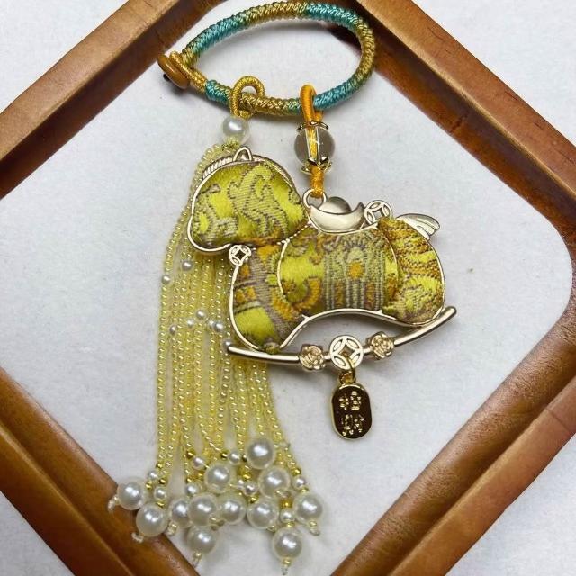 成品宋錦小馬流蘇掛件 手工生肖馬車掛鑰匙扣 包包掛飾古風飾品國潮