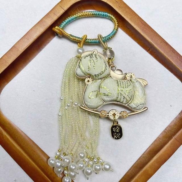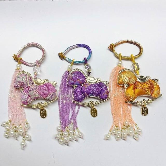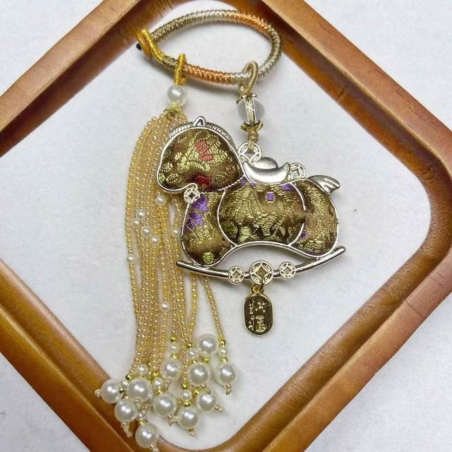 成品宋錦小馬流蘇掛件 手工生肖馬車掛鑰匙扣 包包掛飾古風飾品國潮