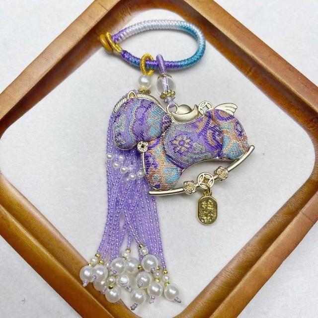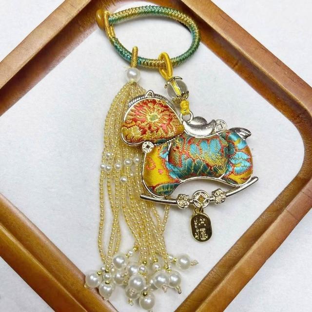 成品宋錦小馬流蘇掛件 手工生肖馬車掛鑰匙扣 包包掛飾古風飾品國潮