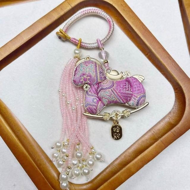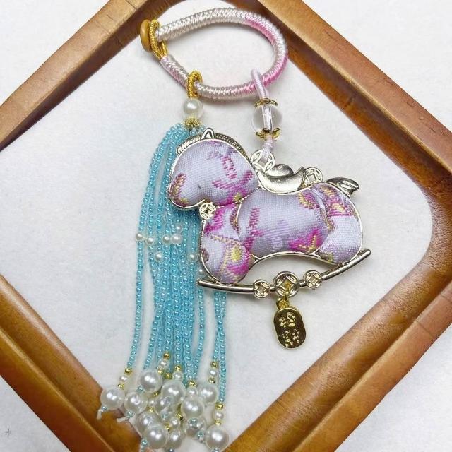 成品宋錦小馬流蘇掛件 手工生肖馬車掛鑰匙扣 包包掛飾古風飾品國潮