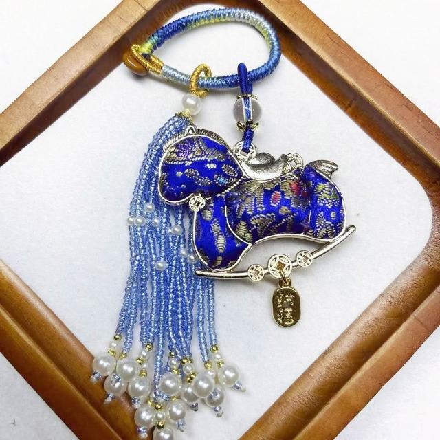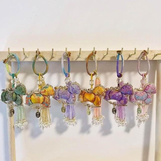 成品宋錦小馬流蘇掛件 手工生肖馬車掛鑰匙扣 包包掛飾古風飾品國潮