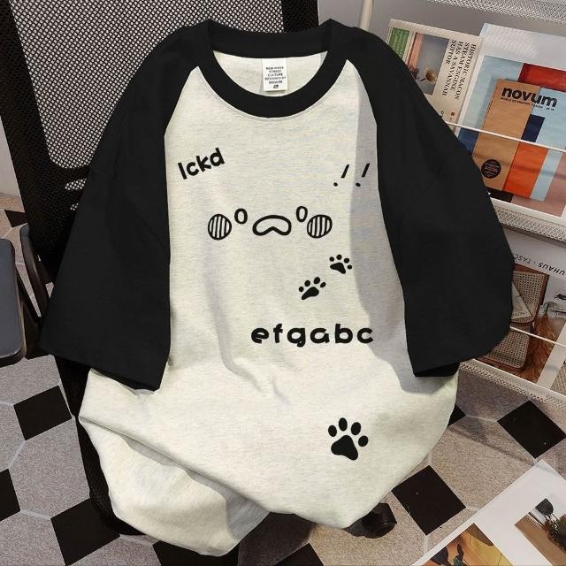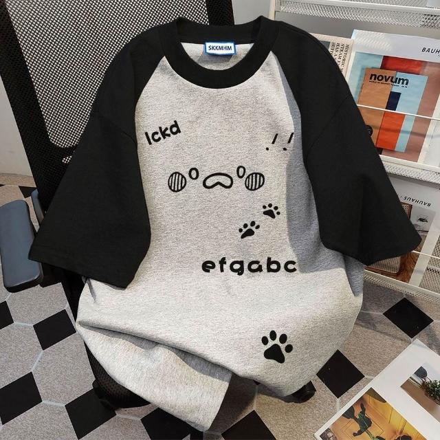 夏天純棉T 美式可愛字母印花短袖t恤 夏季寬鬆小衆設計感情侶上衣ins