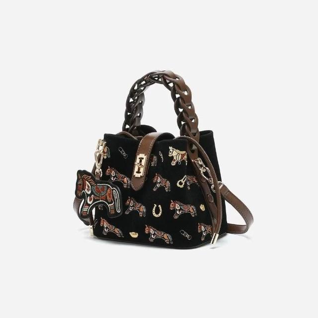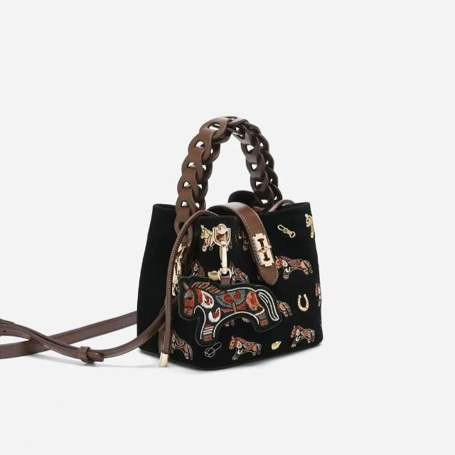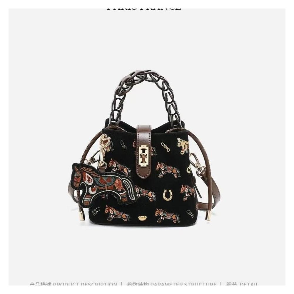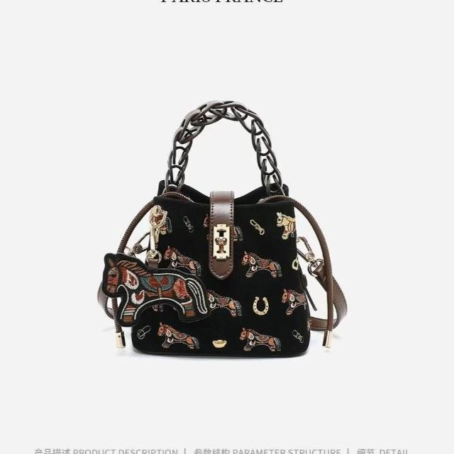 包包女式斜跨 輕奢小衆2026新款爆款單肩包 小馬刺繡菜籃子斜挎包
