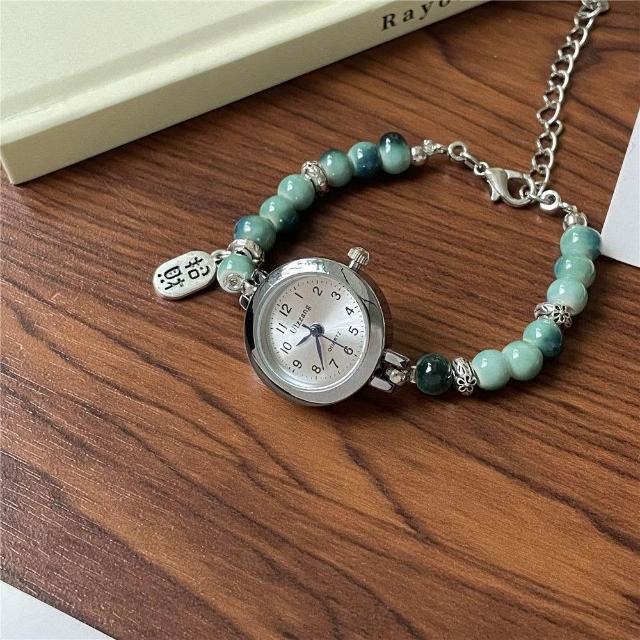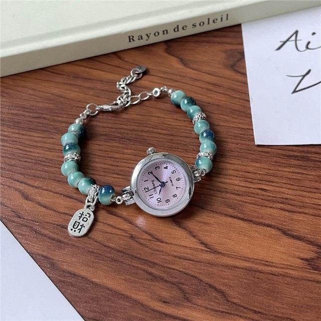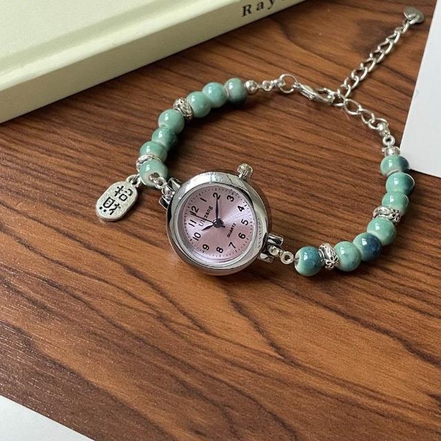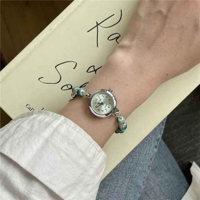 夏天小清新陶瓷串珠手鍊手錶女 高中生閨蜜日常搭配小衆設計感輕奢手腕錶