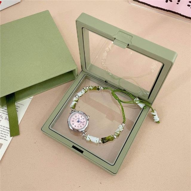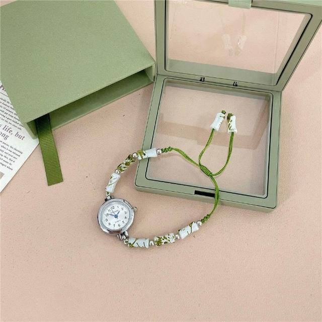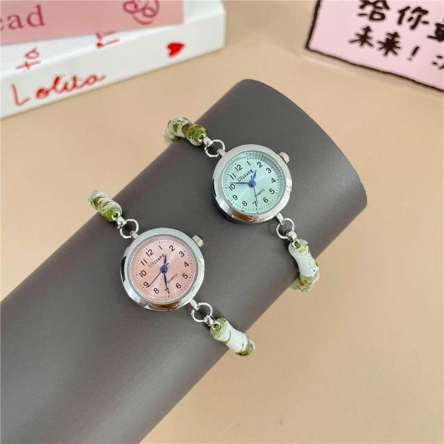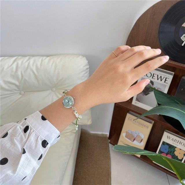 時尚森系竹節復古風綠色手鍊手錶女 漢服配飾品手飾表 清冷感diy編織