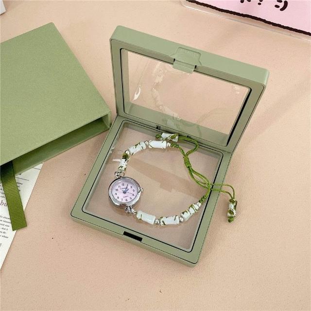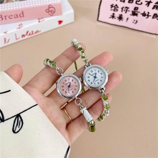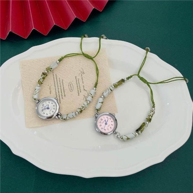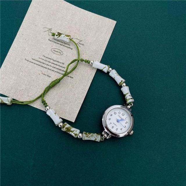 時尚森系竹節復古風綠色手鍊手錶女 漢服配飾品手飾表 清冷感diy編織
