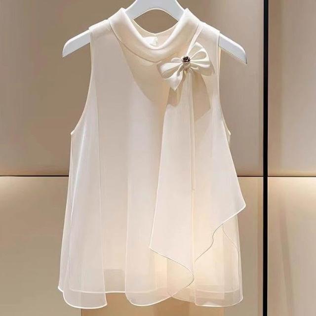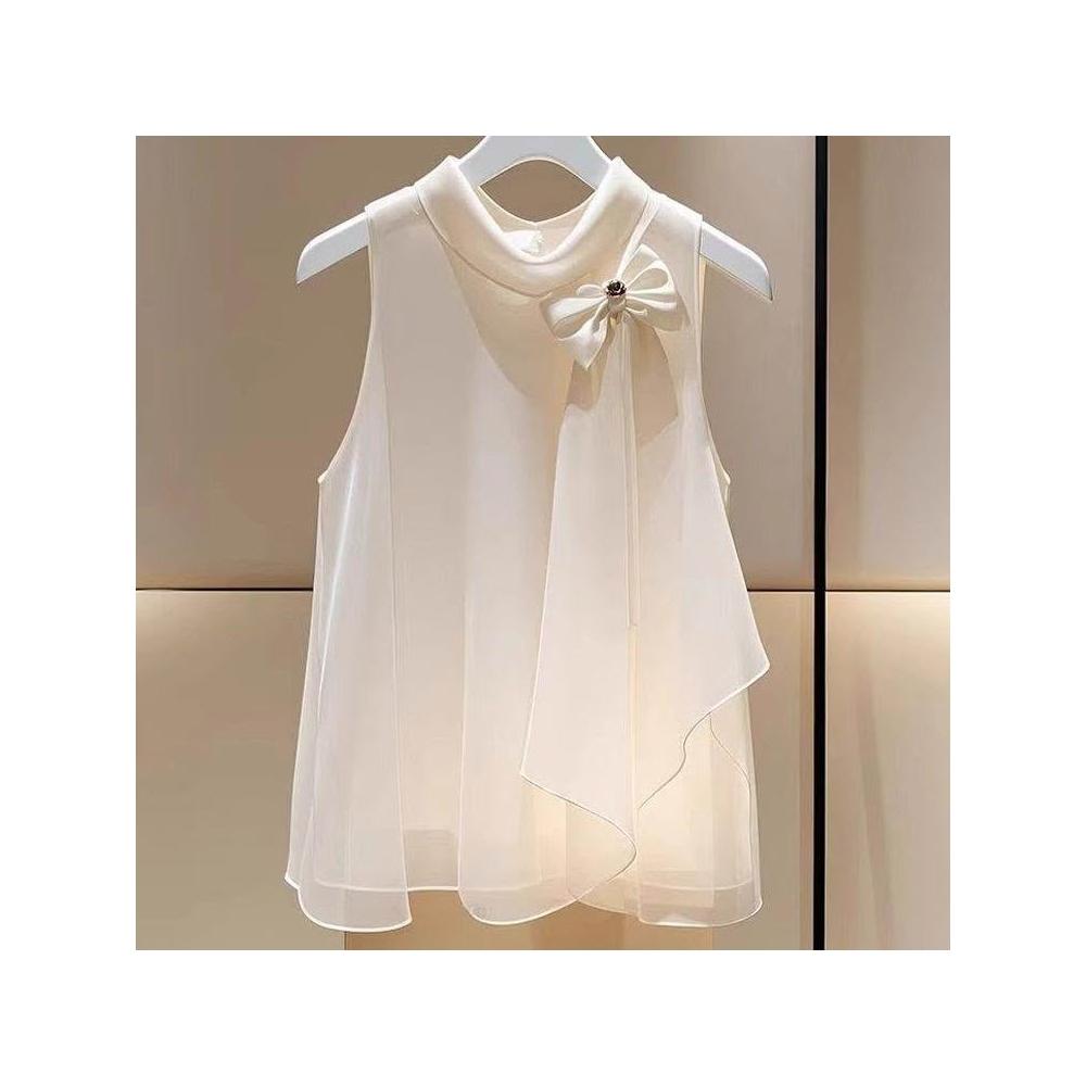 雪紡背心女 夏季新款時尚開叉無袖雪紡上衣 甜美蝴蝶結兜領小衫潮