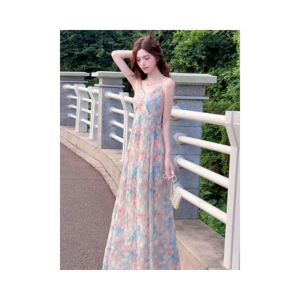 法式粉色碎花吊帶 連衣裙子女 夏季2026新款 海邊度假氣質長裙