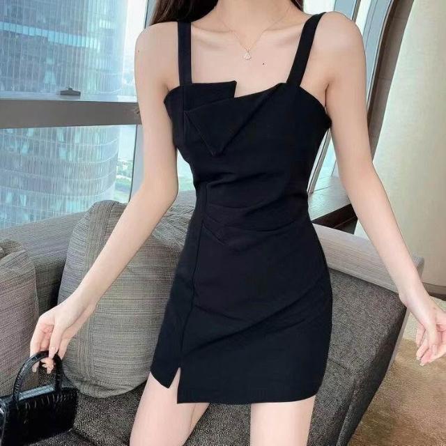 純色吊帶連衣裙女氣質小衆設計赫本風2026夏季韓版顯瘦垂感小黑裙