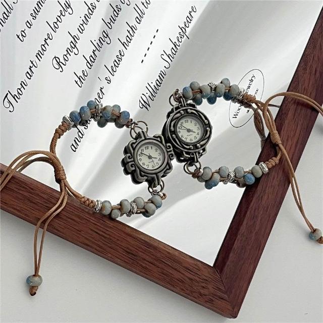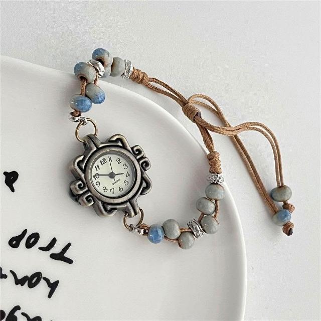 中國風復古陶瓷串珠手鍊手錶女生 學生小衆設計感國潮女孩百搭手飾表