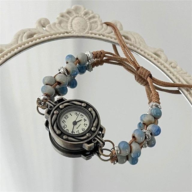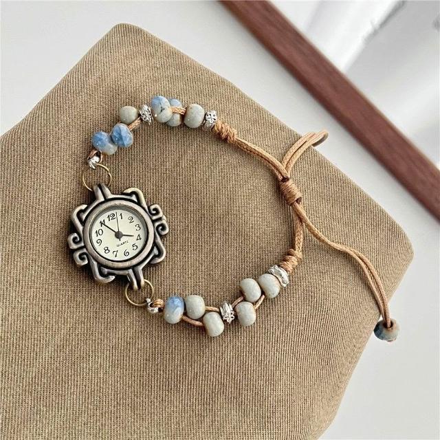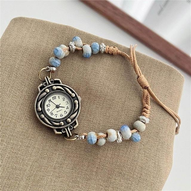 中國風復古陶瓷串珠手鍊手錶女生 學生小衆設計感國潮女孩百搭手飾表