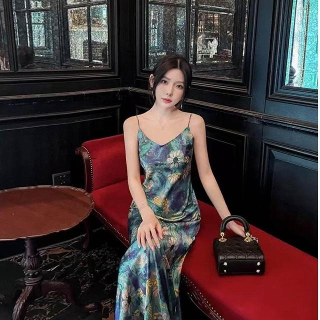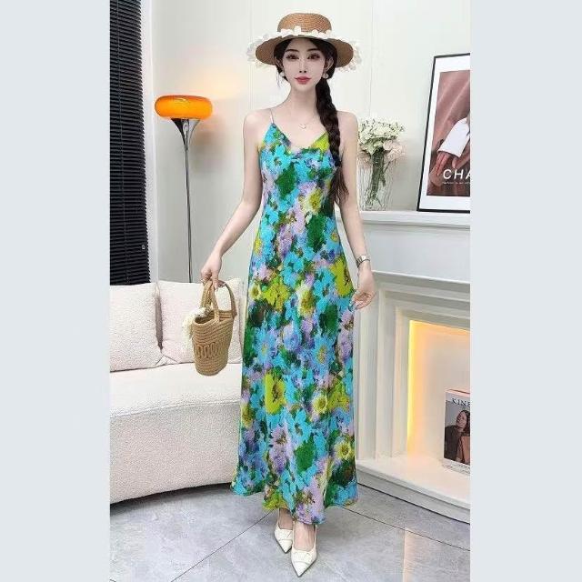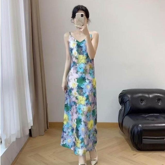 春夏季新款 時尚印花修身顯瘦高端醋酸長裙 優雅氣質女人連衣裙