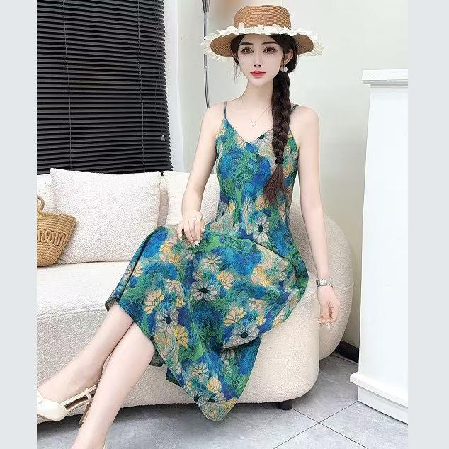 春夏季新款 時尚印花修身顯瘦高端醋酸長裙 優雅氣質女人連衣裙